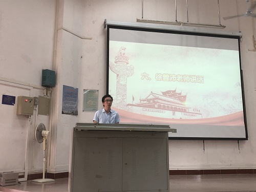 最后,徐曾沛老师作为本次培训班的班主任上台发言。他首先提出在11月11日相较于网络上的所谓双十一狂欢节,我们更应将这一天铭记为人民空军的华诞。不仅如此,牢记中国共产党的光辉历史和党全心全意为人民服务的宗旨,从细节、小事发扬中国共产党的伟大精神,坚定理想信念,与时代同发展、共命运,关注时事政治,不被历史淘汰,肩负起大国责任是各位作为学生党员发展对象需贯彻落实的。在此,徐老师对全体学员提出了三点要求:自律、学习、责任。虽正值青春,风华正茂,但这并不是放任自由的理由。只有将自己从安逸圈中抽离出来,面对更多的风浪、逆境,将来才能够在社会上立足,从挫折中站起来。一切的道理,回归本源,就是做好自己。而这,也是中国共产党人所坚持的基本准则。徐老师在发言结尾处对所有学员提出殷切希望,希望他们能树立正确的人生观、价值观,严肃自身纪律,提高自身思想觉悟,通过党校的学习尽快成长起来,积极进取,用党员的标准严格要求自己,争取早日通过党组织的培养与考验,成为一名光荣的中国共产党党员。