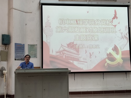 随后所进行的是培训班第一次党课“如何认识中国共产党的先进性”正式开课,由陈泰义老师进行授课。首先,陈老师从中国共产党的基本队伍、党明确的奋斗目标、党为人民服务的永远不变的意识和理念、党居安思危纠正错误的自觉、党正确的政治路线等六个方面阐释了党的性质。随后,陈老师结合自身的经历,以具体的实例进行说明,阐述了如何成为一名合格的学生党员。陈老师的授课加深了学员们对党的理解和认识,使同学们意识到了成为党员路途之艰难,希望同学们能够早日成为一名德才兼备的共产党员。