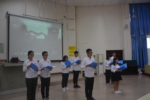 第二轮比赛结束后,电气系党支部带来《我的祖国》诗歌朗诵,表达了对祖国的赤忱之心,接着是机械系党支部带来的弹唱《欧若拉》,优美的歌曲让人仿佛置身于海大的椰林小道。而在汽车系党支部的朗诵《这个夏天,海南很“热”》中,则让人感受到勤奋向上,舍我其谁的青春活力。
