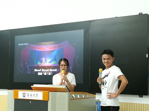 比赛结束后现场的气氛依然热烈,配音比赛的余热久久不散,不论是现场紧张激烈的比赛角逐,还是轻松活泼的现场互动,无处不显现出同学们的青春激情和风采。椰云霞漫,灯下幕白,趣音如栩,青春彰华。