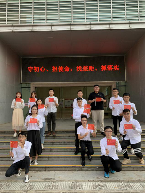 2019年10月1号下午4时,必赢国际437官网致远班党支部先后在思源学堂正门、联谊馆正门、行政楼国旗下参加“国旗在我心中”——我和国旗同框活动。支部书记张小其老师、党员和积极分子14人共同参加。