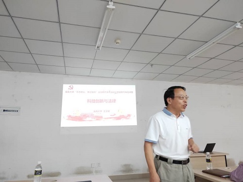 王崇敏副校长开门见山,以个人的亲身经历、所见所闻为同学们详细讲解了法律与科技所存在的联系,例如应用软件的开发著作权归属于谁、机器人破坏会展展品的责任谁来承担等问题,“科技进步离不开法律的保护、制度的规范”,他以通俗易懂的例子为同学们形象的阐述了科技创新与法律是呈一种相辅相成、共同进步的关系。王校长还提出:“科技创新需要伦理界限,创新需要我们严格基于法律,创新人才本质上更应懂得利益的维护”。王校长对机电学子在科技创新方面寄予了殷切的希望,同时也提出了创新要基于法律知识的宝贵建议。