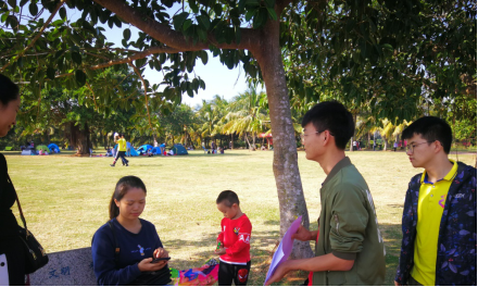 宣讲开始之前,参与人员先向公园游客分发电子宣传单,宣传垃圾分类理念,号召大家积极参加保护环境、节约资源活动。