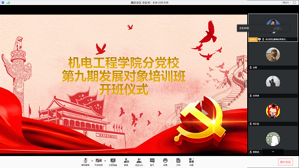 为了帮助入党发展对象端正入党动机,增强时代使命感和历史责任感,争取早日加入党组织,壮大党员队伍。4月25日上午10:00,必赢国际437官网分党校第九期发展对象培训班开班仪式在线上举行。出席会议的领导和老师有:学院党委书记黄国标、副书记熊文军、机械系党支部书记崔建兵、汽车系学生党支部书记印一凡,团委学生会支部书记傅悦,致远班支部书记张小其,电气系学生党支部书记董赫,研究生党支部书记黎航,19级辅导员章梦琪,参加会议的有党建联席会全体人员、第九期发展对象班全体人员。会议由培训部刘潇博主持。