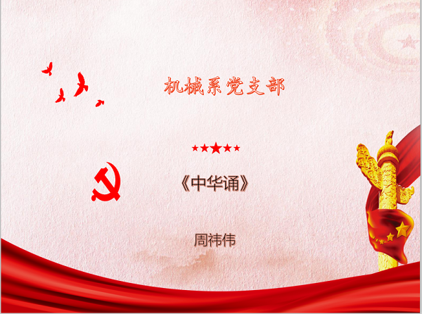 大会第一项,由各个党支部带来了精彩的诗歌朗诵,机械系党支部周祎伟同学带来的《中华诵》,声音洪亮,慷慨激昂,感情饱满,诵出了我们对于中华上下五千年的辉煌历史与当今成就的骄傲与自豪,更让同学们焕发出更加丰富的热情去建设祖国、报效祖国。电气系党支部、汽车系党支部和团学党支部也为大家带来同样精彩的朗诵,让同学们激情澎湃。