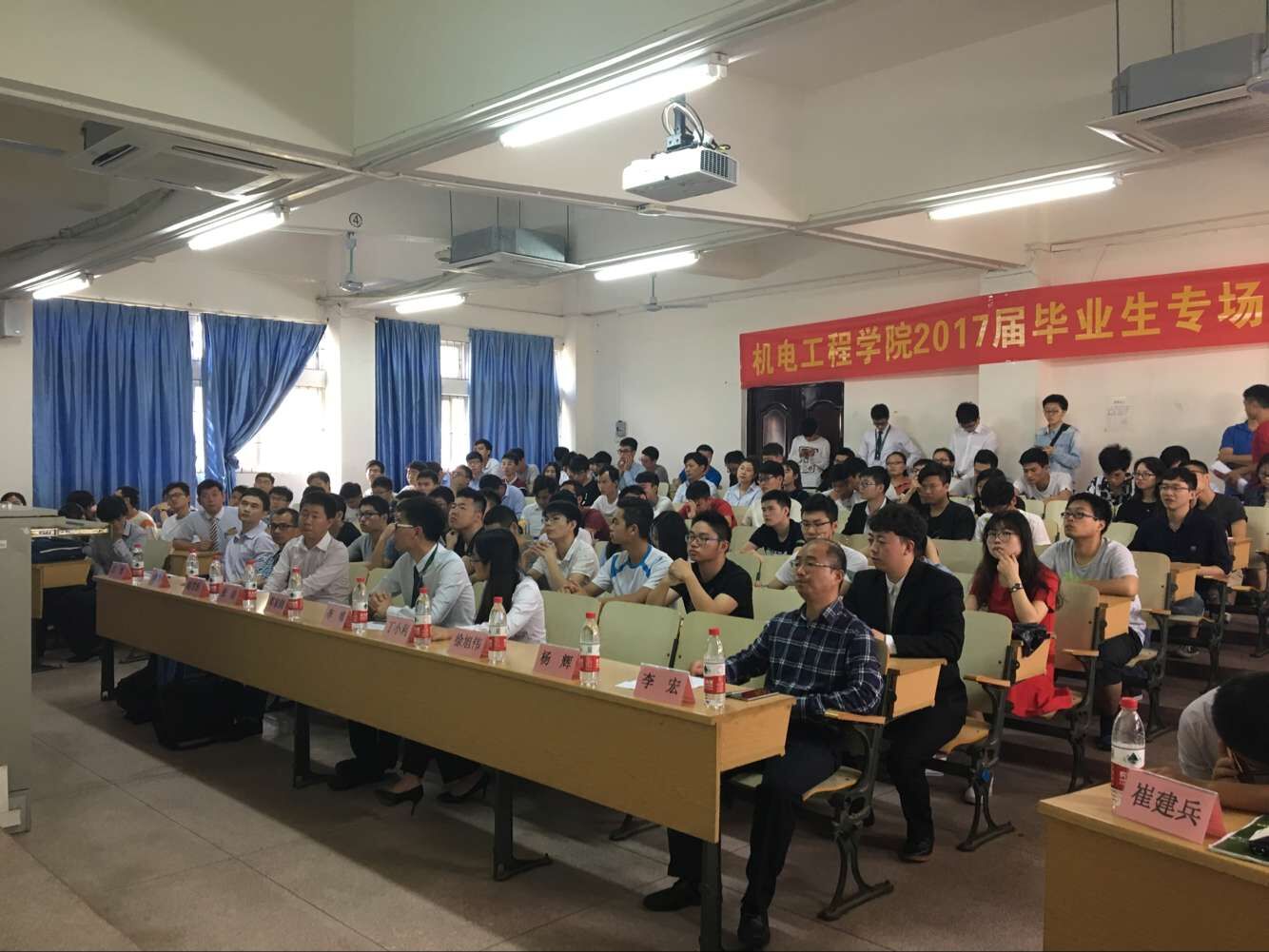 2017年3月14日上午,必赢国际437官网2017届毕业生第四场专场招聘宣讲会在2教110成功举办。出席招聘宣讲会的有必赢官网党委副书记李宏、学工办主任崔建兵,8家用人单位人事部主要负责人,2017届毕业生及机电职协干部等150人参加。宣讲会由校园大使部任海琪主持。