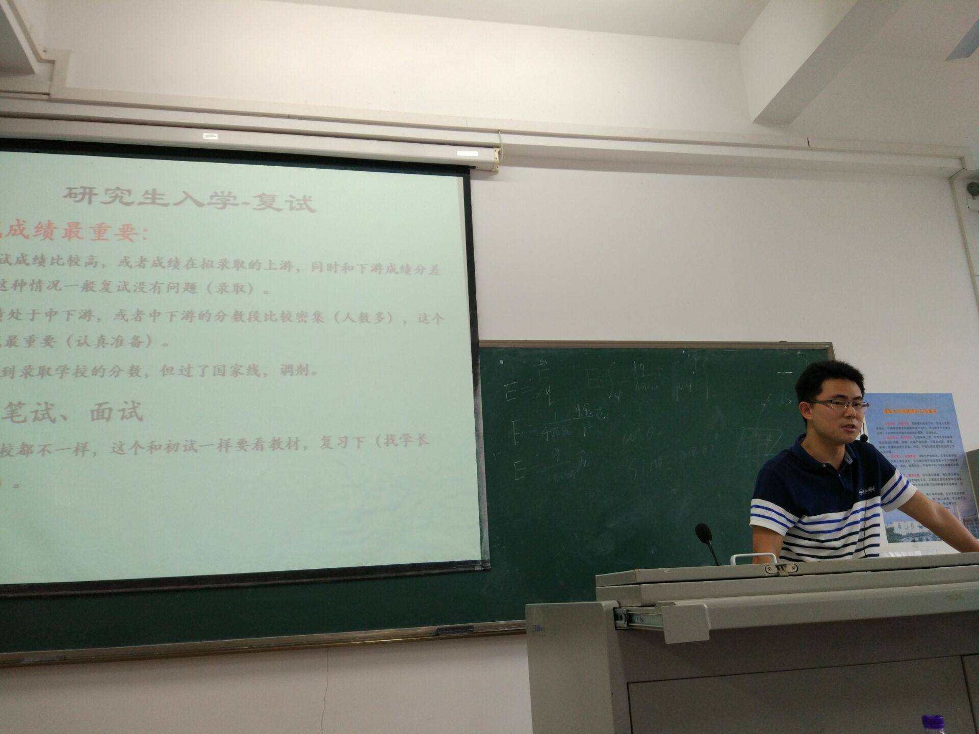 会上,李书记对同学们的成绩表示了肯定,希望同学们能够收集复试及调剂信息,多咨询老师、师兄师姐,再接再厉顺利通过复试。汝老师从复试准备、联系导师、收集调剂信息等多个方面进行了指导,并用自身亲身经历告诉大家如何准备。崔老师对近三年的初试成绩进行比较,对同学们的辛勤努力表示赞许,和大家分享了往届学长学姐的考研经验,拓宽了大家了解信息和获取资源的渠道。