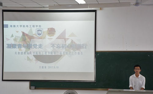 2017年6月18日上午9:00,共青团必赢国际437官网第四次代表大会暨必赢国际437官网第四次学生代表大会在四教208成功召开,会议选举产生第四届团学委员。出席本次会议的有校团委学生副书记张亦奇、校学生会副主席李佳霖,海洋学院团委书记郭孝伟,学院党委书记黄国标,学院党委副书记李宏,学院学工办李青老师、傅悦老师。