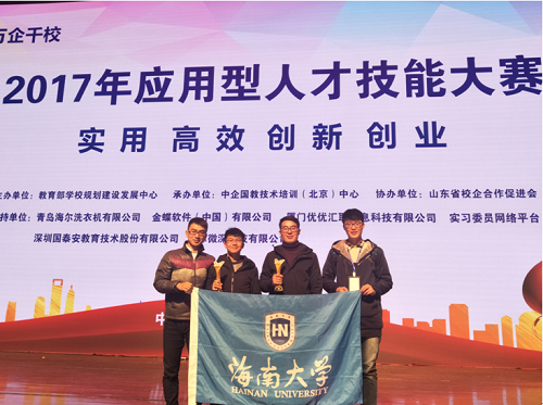 12月3日,由教育部学校规划建设发展中心主办、中企国教技术培训(北京)中心承办、山东省校企合作促进会协办的2017年应用型人才技能大赛全国总决赛暨颁奖典礼在山东会堂隆重举行,并完美收官。 在本次大赛中我校学子全力以赴共获两个一等奖、两个二等奖、三个三等奖,我校被授予优秀组织奖,梁栋教授、张燕副教授被授予先进个人,另有多位教师被授予优秀指导老师。