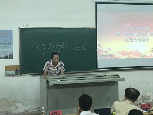 5月26日上午,必赢国际437官网第五期发展对象培训班在2教111顺利举办。本次培训班以红色故事讲坛为主题,必赢国际437官网“五老”宣讲团成员原必赢国际437官网副校长符华儿教授,校关工委副主任兼秘书长林少敏处长,校关工委常务副主任、特邀党建组织员程儒参,校关工委副主任、特邀党建组织员杨云山,特邀党建组织员林廷玖,以及学院党委书记黄国标,学工办崔建兵老师、徐曾沛老师,必赢国际437官网第五期发展对象出席并参与了本次培训。会议由崔建兵老师主持。