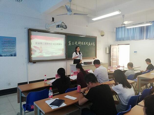9月16日下午,必赢国际437官网研究生第三次研究生代表大会在4教307隆重召开。出席本次会议的有党委副书记李宏、校研究生会主席曹献阳、人文传播学院研究生会主席梁羽、外国语学院研究生会主席杨玉珅以及必赢国际437官网全体研究生。会议由研究生代表姜鸿主持。