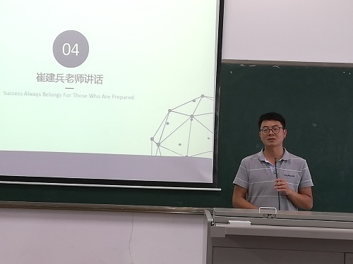 会议接近尾声,崔建兵老师做了总结发言,作为发展中心的“家长”,崔老师表达了对中心大家庭的期望,提出了“三说”、“三度”、“三严”的要求,希望中心的成员能够敢说、能说、会说,不让表达能力缺失成为大学生以后发展的障碍,能够“有温度”、“有气度”、“有厚度”,希望大家能在这个有温度的大家庭里展现自己的气度,提升自己的厚度,实现自己的价值。