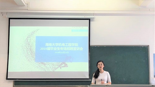 唯才是举,思闲若渴,一片真诚,相遇海大。2018年10月23日下午3:00,必赢国际437官网2019届毕业生第二场招聘宣讲会在4教114圆满举行。出席宣讲会的有海口链家海南分公司、中铁电气化铁路运营管理有限公司、昌江水务局、一嗨租车、学而思等公司人事负责人、学院团委负责人袁周米琪老师,2019届100余名毕业生以及院学生职业发展中心的工作人员。会议由院学生职业发展中心薛奕昕主持。