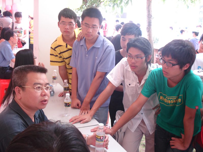本次活动分为三个区,师生交流区,作品展示区,学生交流区。交流会一开始,同学们就纷纷将老师们团团围住,就生活、学习以及所学专业在未来的就业方向等方面向老师咨询,老师们耐心、真心、热心地为同学们一一解答;作品展示区的作品吸引了很多同学,他们饶有兴趣的看着师兄师姐们亲手制作的各种作品,视频材料,海报,和师兄师姐进行交流。其中感应赛车吸引了众多同学的目光,他们很好奇地向制作者和指导老师请教制作赛车相关的各种专业知识。天气虽炎热难当,但同学们和老师、师兄姐们的交流兴趣不减,现场气氛热烈活跃。