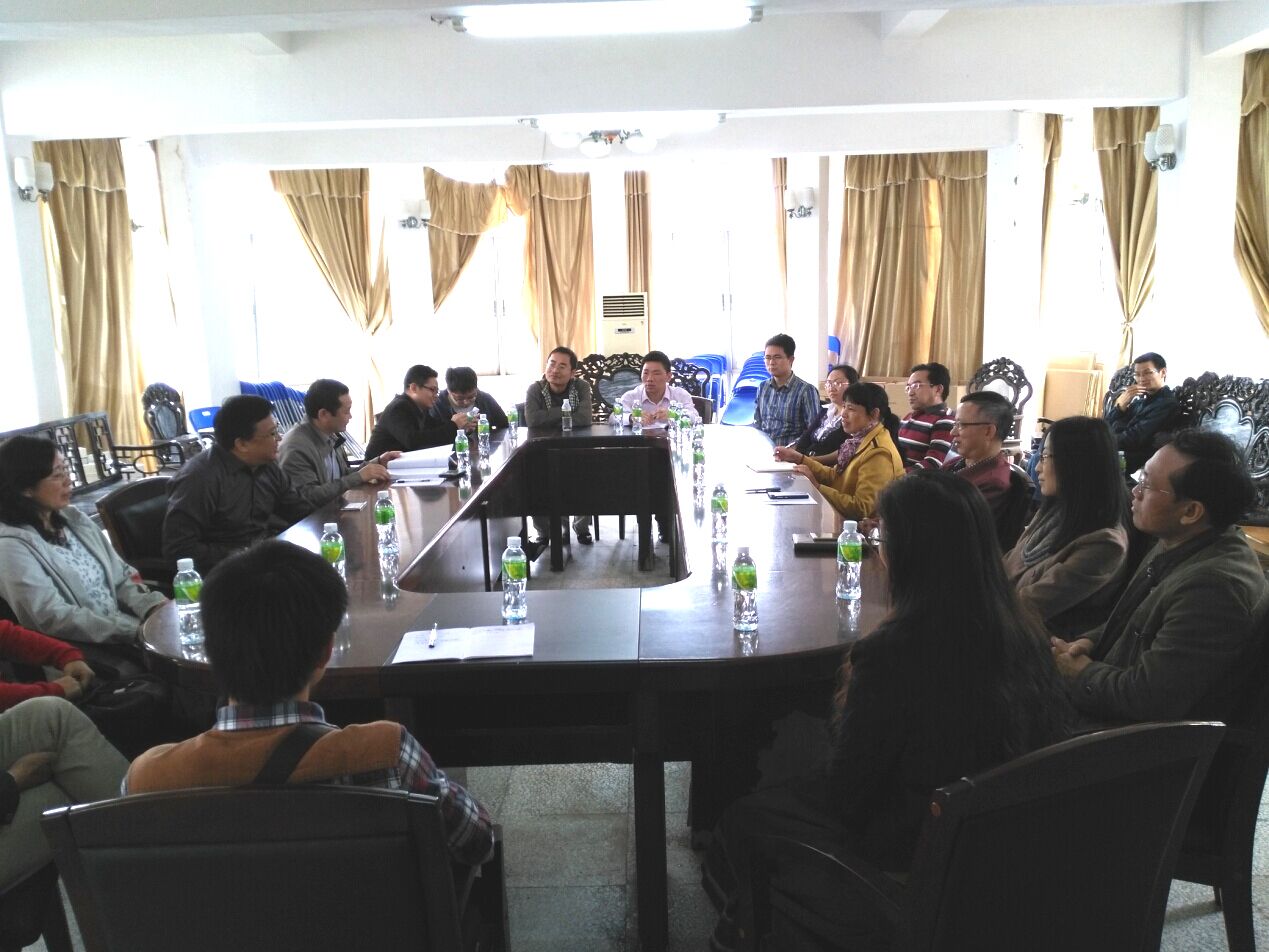 2016年1月18日下午,韶关学院物理与必赢国际437官网院长郑春龙教授一行八人来访必赢官网,学院院长翁绍捷、机械系主任廖宇兰、副主任梁栋、实验室主任樊军庆等领导和老师出席交流会。