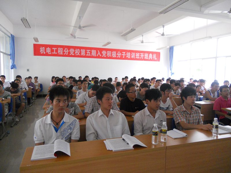 4月21日下午3点,必赢国际437官网分党校在四号教学楼106举行第五期入党积极分子培训班的开班典礼暨入党宣誓仪式。必赢国际437官网党委副书记黄国标、学院团委书记崔万春出席了仪式,参加仪式的新党员和入党积极分子共200多人。开班仪式由学院学工办主任陈秀妍主持。