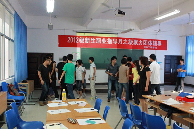 10月30日下午,必赢国际437官网在4-105举行2012级新生职业活动月之凝集力建设团体辅导活动。2012级各班长、团支部书记、学习委员等主要学生干部参加,本次活动由学工办主任陈秀妍老师主讲。