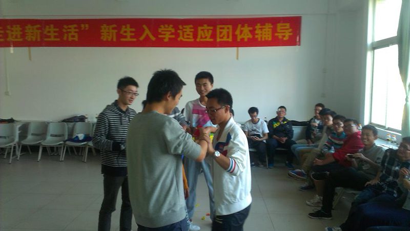 本次活动开展,崔老师对团体辅导与个体辅导的概念做了简单解释,并讲述了团体辅导的目标、动力、生效果因素及关键,望所有的成员都能够全身心的投入到此活动中。首先崔老师带大家一起开始热身,让大家一起玩起了“一元五角人民币“游戏,将组员的注意力带到活动中。随后大家通过“排排站”、“勇于承担”、“齐心协力合奏曲”、“齐心协力吹气球”、“成长三部曲”等充满意义的小游戏对交往、沟通以及生活学习等方面有了诸多感悟。在每个游戏结束后,崔老师都会让同学分享自己在游戏过程中的收获,去领悟团队合作的重要性、学会敢作敢当,也让他们明白人生不是一帆风顺,有成功也会难免又失败。整个活动持续了近两个小时,一直在愉悦轻松氛围中进行。