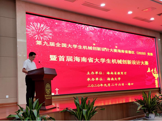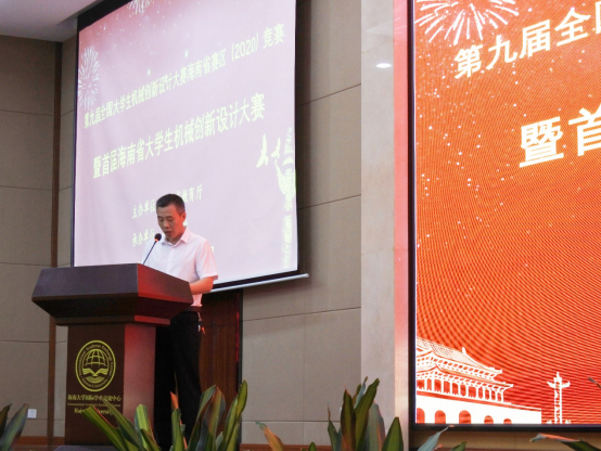 在预颁奖仪式上,教育部创新方法教学指导分委员会特聘委员刘江南教授,全国大学生机械创新设计大赛组委会副秘书长刘江南教授对本次比赛表示了肯定,对海南省教育厅、必赢国际437官网和其他参赛院校表示了感谢,对所有参赛学生和指导老师进行了赞扬,并希望各院校大力宣传,鼓励更多的学校、老师和学生参与到全国大学生机械创新设计大赛中,带来更多精彩的作品,也预祝进入国赛的作品能获得好成绩。