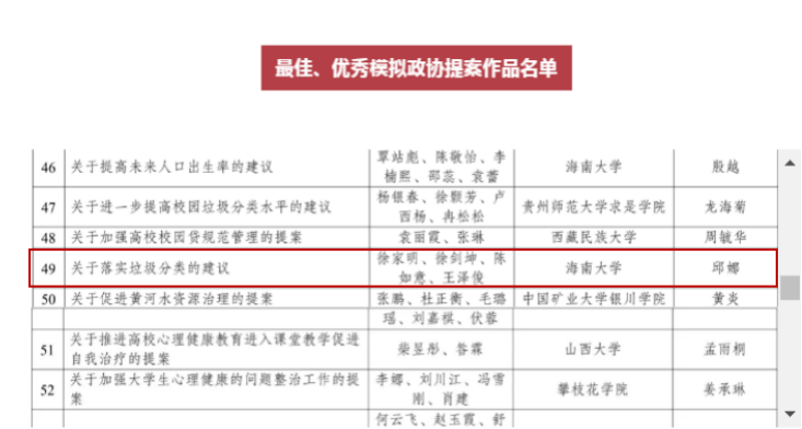 近期,由团中央维护青少年权益部联合人民政协报社、中国青年报社,共同举办的2020年全国青少年模拟政协提案征集活动奖项结果揭晓。全国共有1605件模拟提案作品推荐至全国评审,580件入围终审,100件脱颖而出获评“优秀模拟政协提案作品”。必赢国际437官网由邱娜老师指导、徐家明等4位同学撰写提交的模拟政协提案获评2020全国青少年“优秀模拟政协提案作品”。