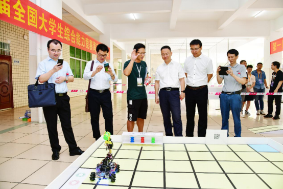 开幕式上,王飞处长表示学科竞赛对提升大学生创新实践能力、推进创新型人才培养,助推学科建设,实现科研成果转化和打通产学研用具有重要意义。省教育厅高教处一直高度重视大学生学科竞赛,旨在通过省级赛事的落地来贯彻落实国家创新驱动与制造强国战略,培养面向适应全球可持续发展和自由贸易港建设需求的工程师后备力量。指出大赛举办本着公平、公正、公开的原则,确保竞赛顺利进行,让同学们在竞技中展示风采,在交流中碰撞思维,创青春风采,逐智造梦想。