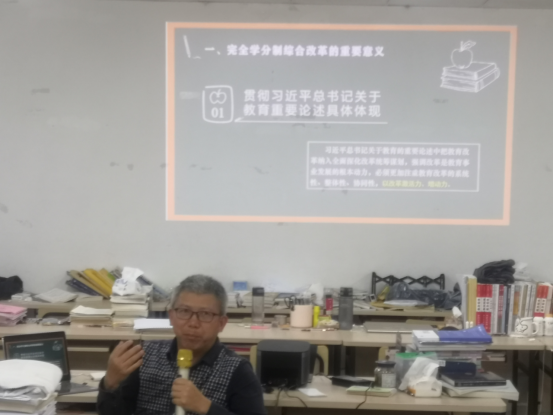 座谈交流会结束后,邱锡光处长为我们学院的全体老师进行了学校有关完全学分制改革专题解读,邱锡光处长讲述了完全学分制改革的重要意义,完全学分制改革的基本内容,重点解读了完全学分制改革的技术路线,完全学分制度下,赋予了老师们更多的自主权,鼓励老师们要开展教学探讨,改进教学技能,不断提高教学水平。