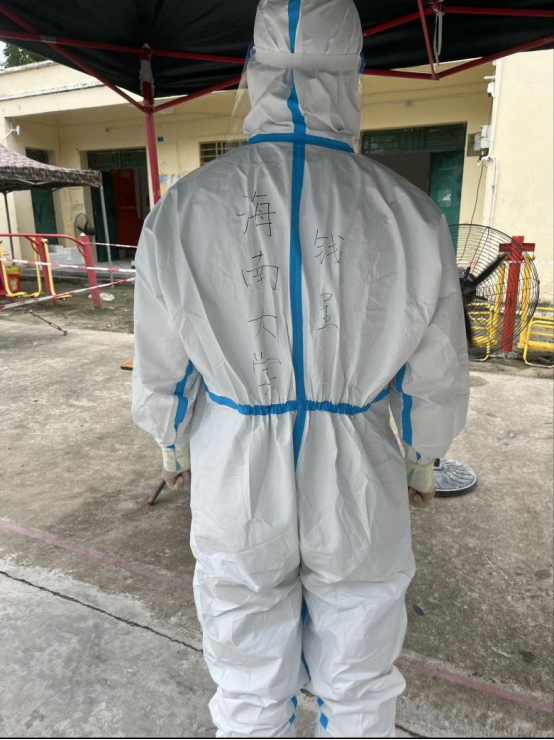 在来到陵水黎族自治县英州镇后,钱呈老师先后被派往万安村和英州村作为核酸信息录入员。天气炎热、阳光暴晒,钱呈老师每次工作结束后就如同在水中泡过一般,但是当听到村民喊他“大白,过来吃饭”时,他就觉得志愿工作不苦也不累,他说:“能真正帮助到一些人,工作就有意义”。